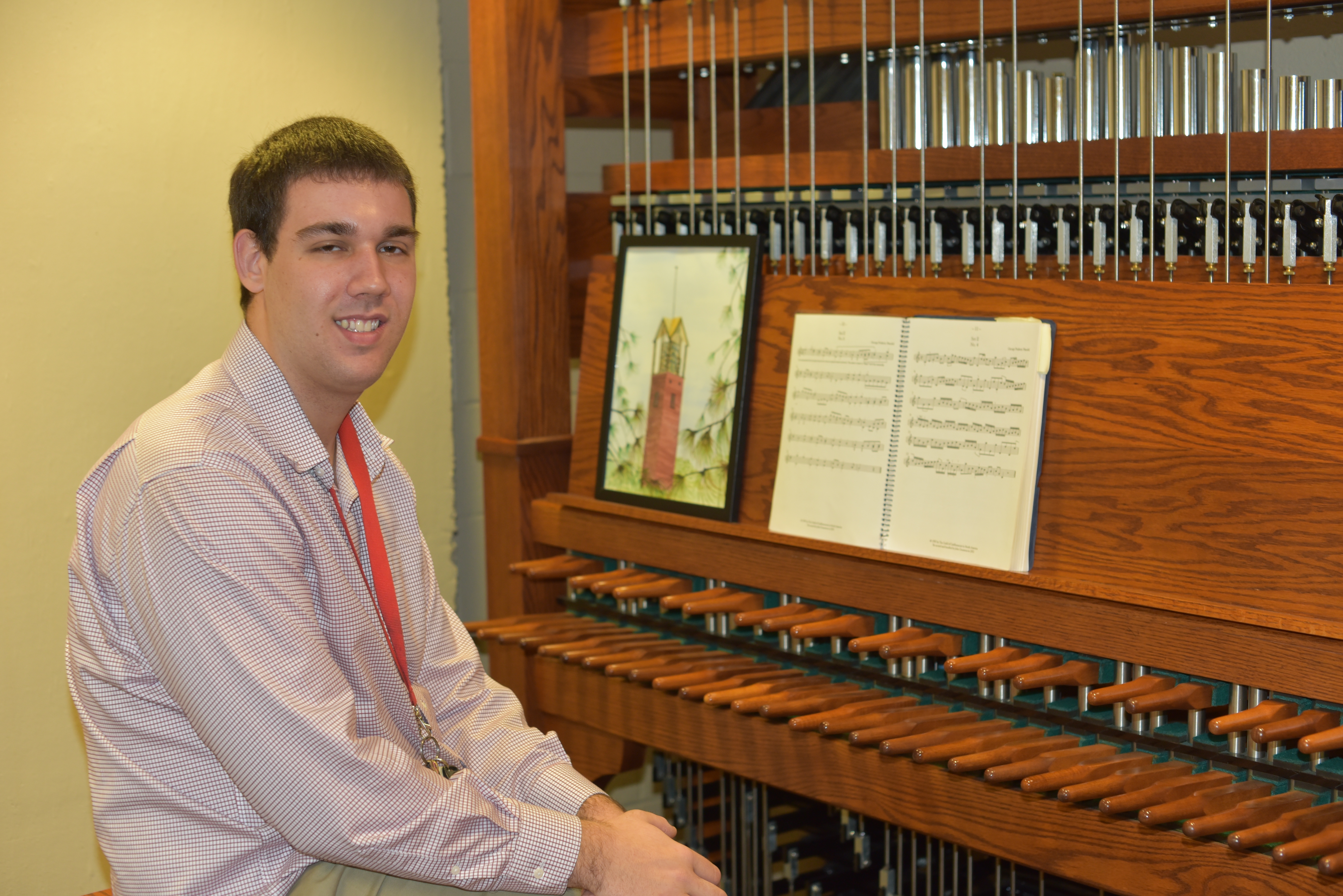 He’ll be playing one of the building’s many pianos. Or pedaling away on the practice carillon.